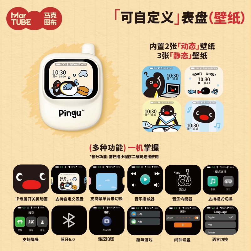 马克图布Pingu屏幕耳机蓝牙礼盒,是一款集实用与创意于一体的贴心礼物。采用可爱企鹅Pingu形象设计,搭配趣味电子墨水屏,可自定义显示文字或图案,个性十足。耳机为高品质蓝牙5.3版本,音质清晰,佩戴舒适,支持长时间续航。礼盒包装精美,内含耳机、充电线及定制卡片,适合生日、纪念日等场合赠送闺蜜或男友。无论是通勤、运动还是日常使用,都兼具颜值与功能性,是表达心意的理想选择。萌趣外观与贴心细节,让这份礼物既实用又充满温度,轻松俘获收礼人的心。