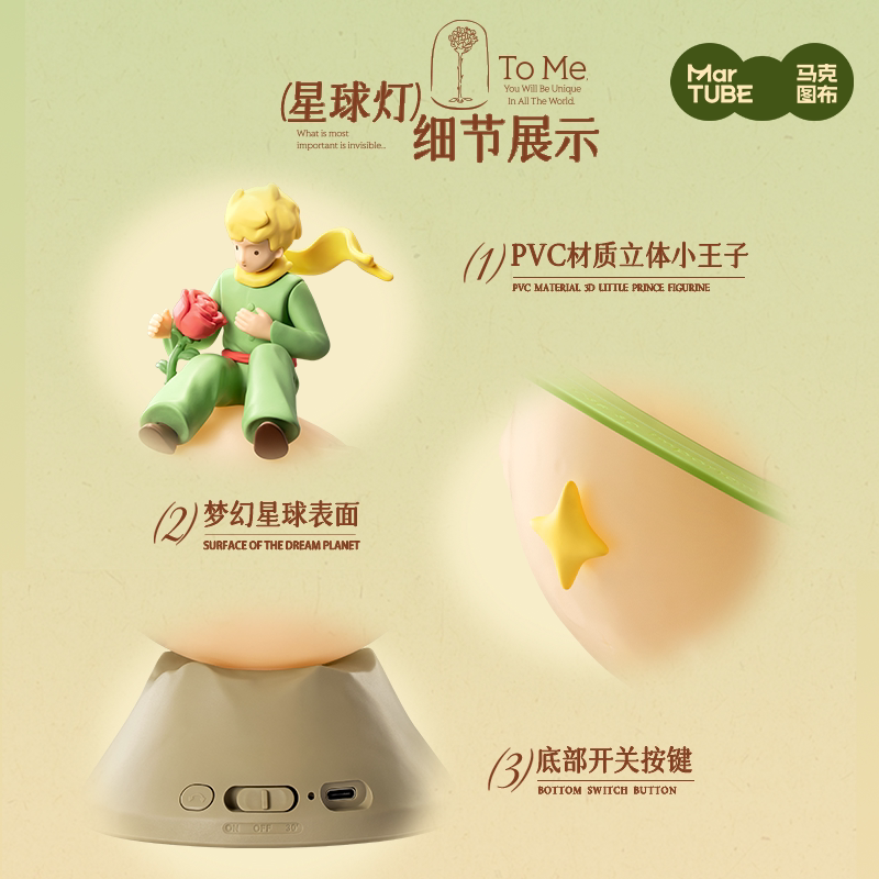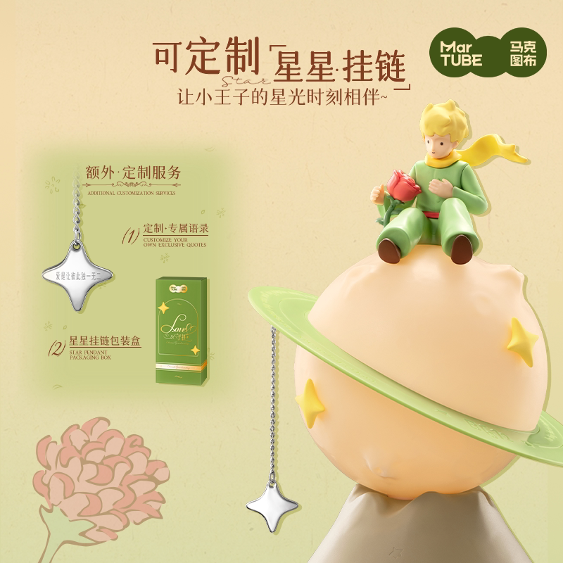 “马克图布小王子联名星球灯”是一款融合经典文学与浪漫设计的创意礼物,灵感源自《小王子》的治愈故事,以精致星球造型搭配柔和暖光,营造梦幻氛围。灯体采用高品质材质,支持触摸调光与定时功能,实用又美观,适合卧室、书桌或客厅装饰。无论是送给女生、闺蜜,还是男友,亦或作为新婚伴手礼,都寓意“你是我的唯一星球”,传递深情与陪伴。包装精美,附赠温馨卡片,让每一份心意都熠熠生辉。既是实用夜灯,更是情感寄托,适合生日、纪念日、情人节等场合,让爱在星光中悄然绽放。