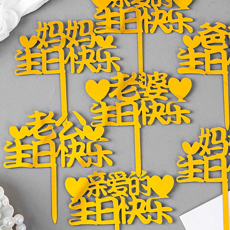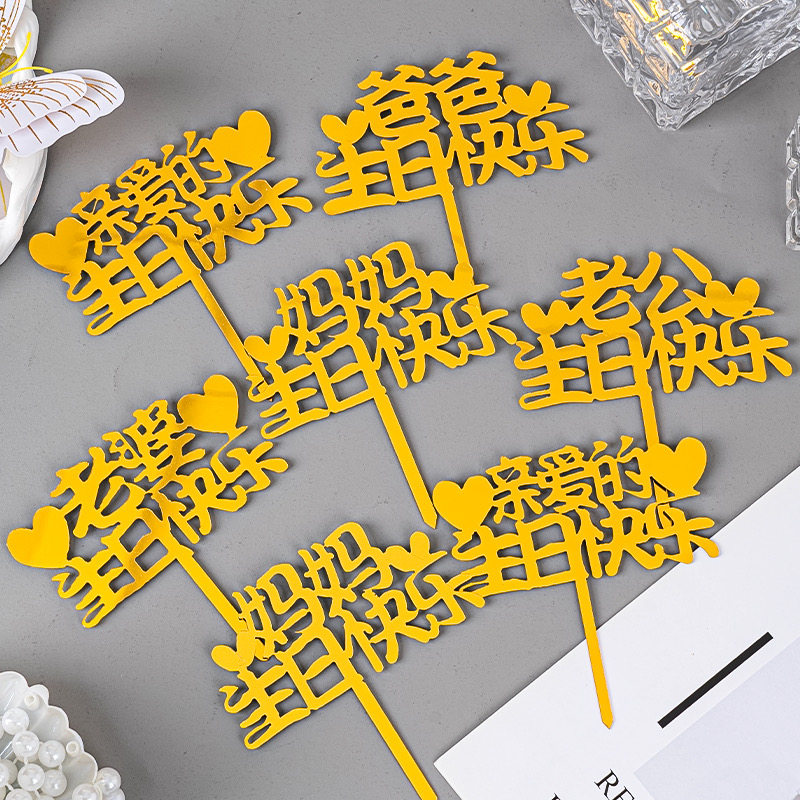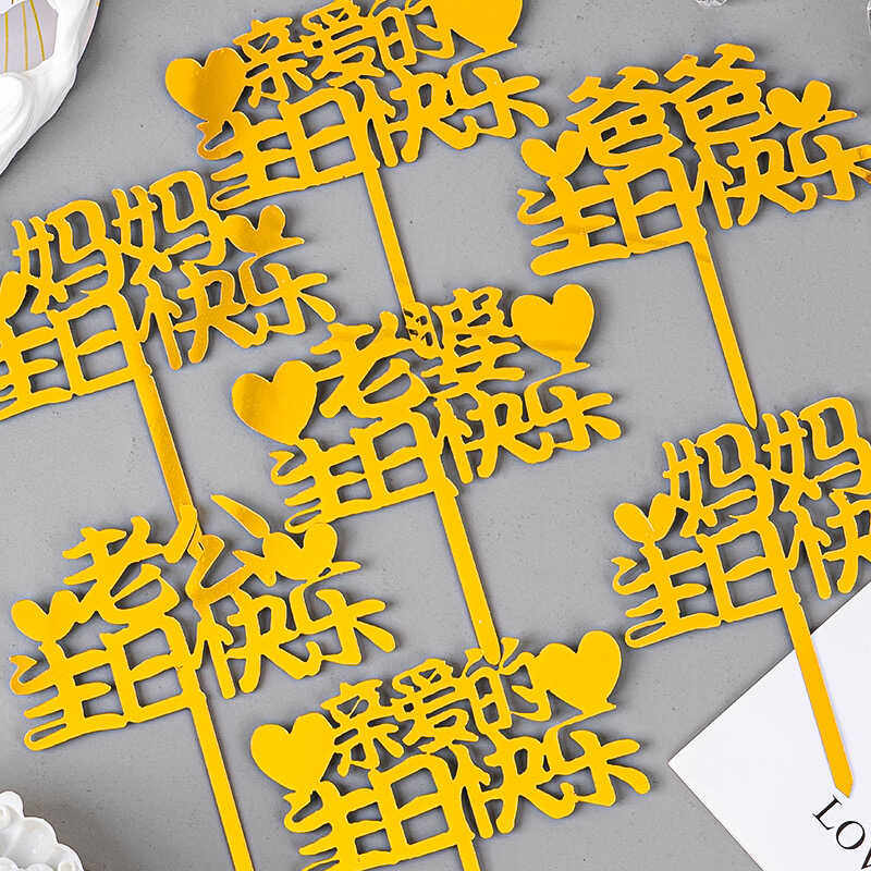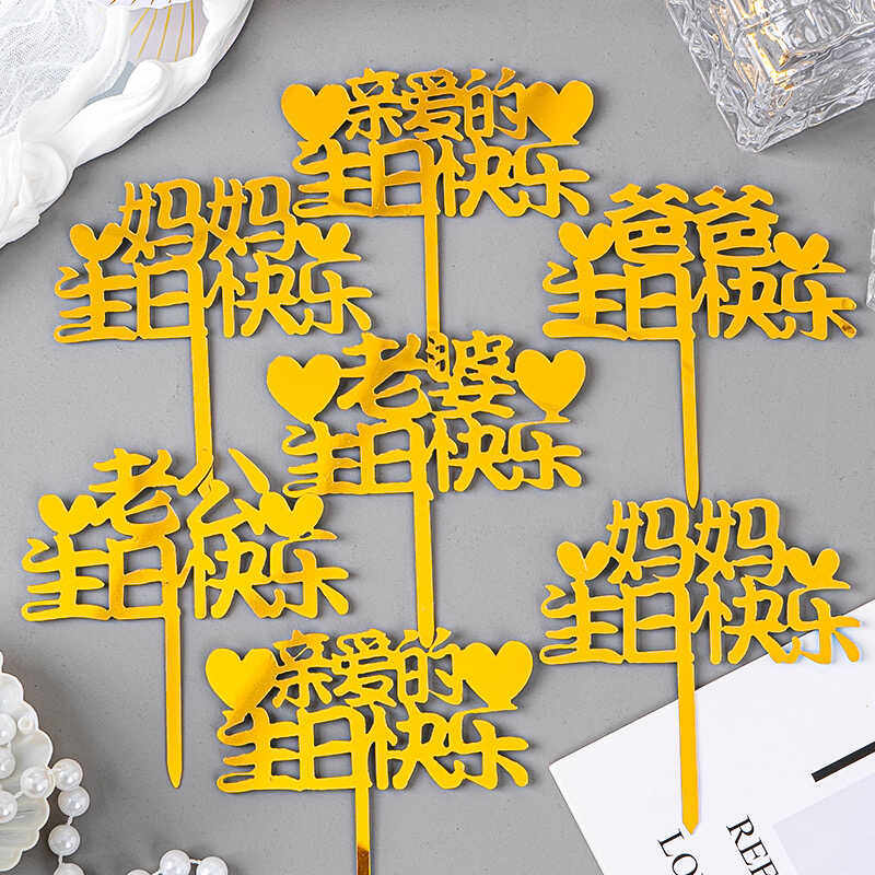 祝福语生日快乐亚克力蛋糕装饰祝爸爸妈妈老公老婆烘焙装扮插件