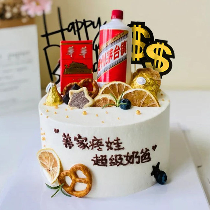 淘宝华子烟盒白酒酒瓶爸爸生日蛋糕装饰摆件父亲节老爸甜品台塑料摆设
