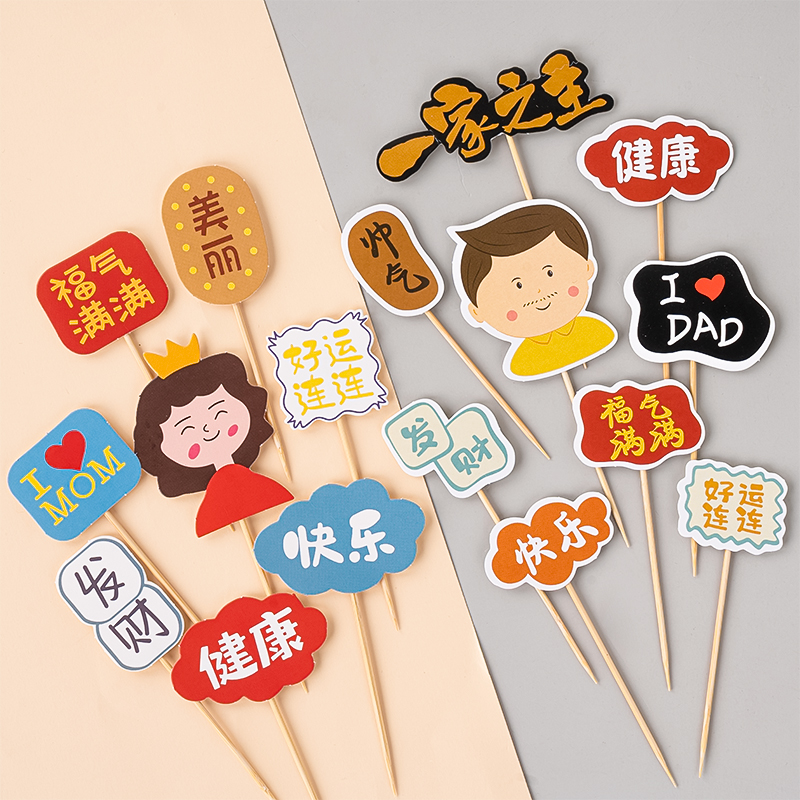 2026年母亲节、父亲节及父母生日专属蛋糕装饰插件——“福气满满·健康快乐”系列,以温馨喜庆的设计传递浓浓亲情。精选环保材质,安全无毒,可放心用于蛋糕点缀。插牌图案融合传统福字、康乃馨、领带等元素,搭配“健康快乐”“福寿安康”等暖心祝福语,寓意美好。适用于奶油、翻糖、慕斯等各类蛋糕,轻松提升节日仪式感。无论是母亲节感恩、父亲节致敬,还是父母生日庆祝,这款精致插牌都能为甜蜜时刻增添温情与祝福,让爱在每一口中绽放,是表达孝心与爱意的贴心之选。