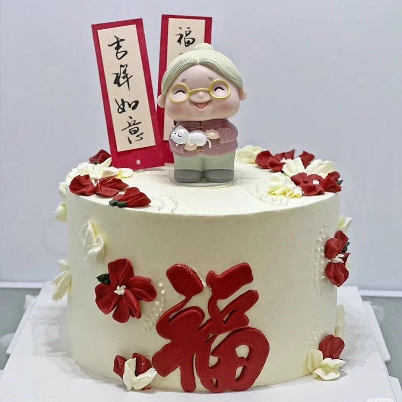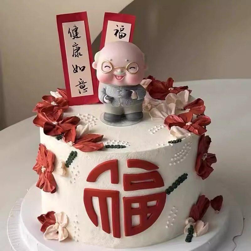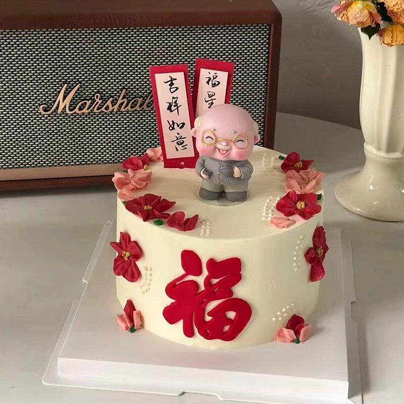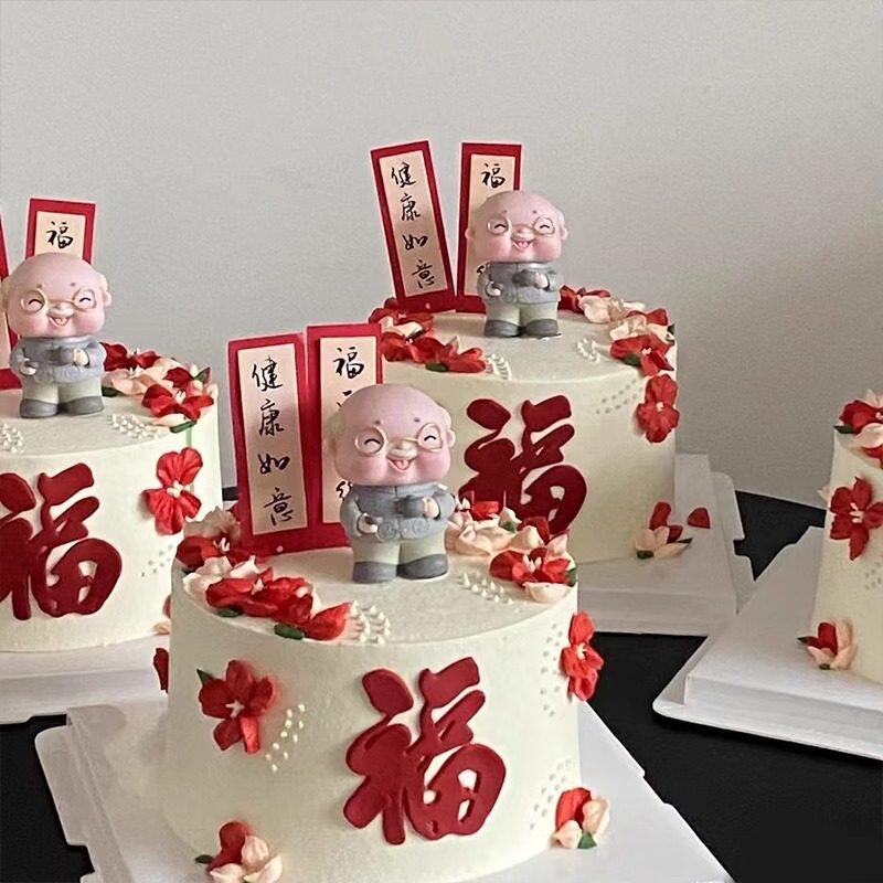 淘宝爸爸祝寿生日蛋糕装饰慈祥爷爷奶奶茶壶摆件大福贺寿喜庆甜品装扮