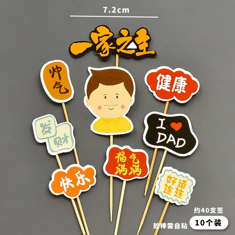 淘网红爸爸一家之主蛋糕装饰插牌富豪男神老爸生日快乐插件甜品台