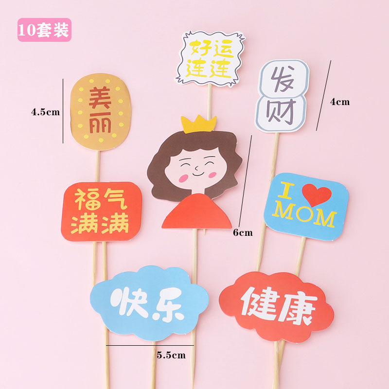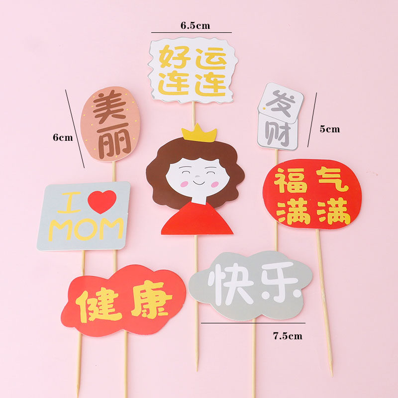 淘宝母亲父亲节蛋糕装饰福气满满健康快乐妈妈爸爸生日祝福语烘焙插牌