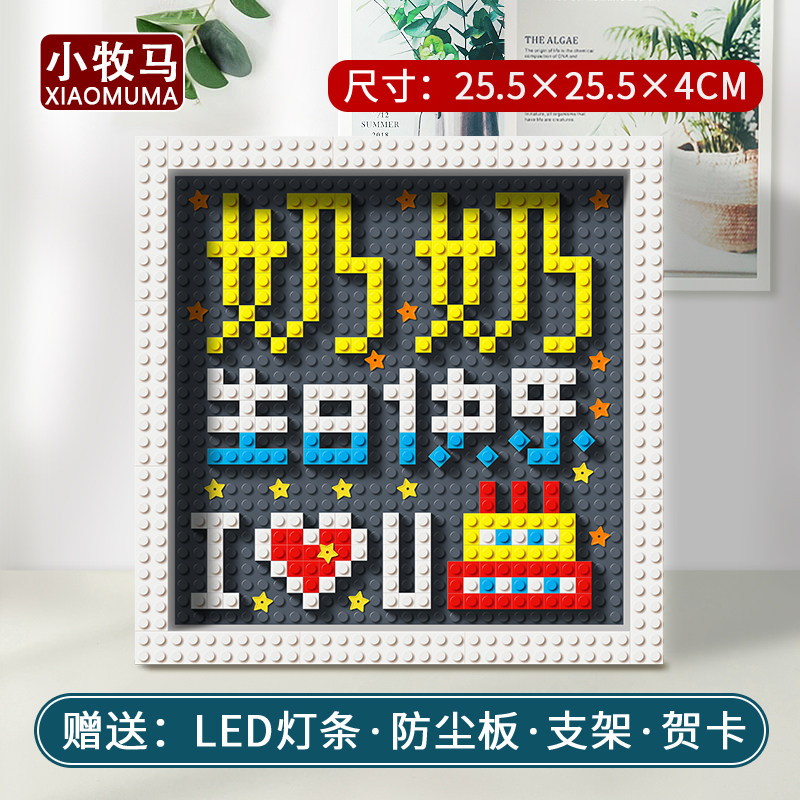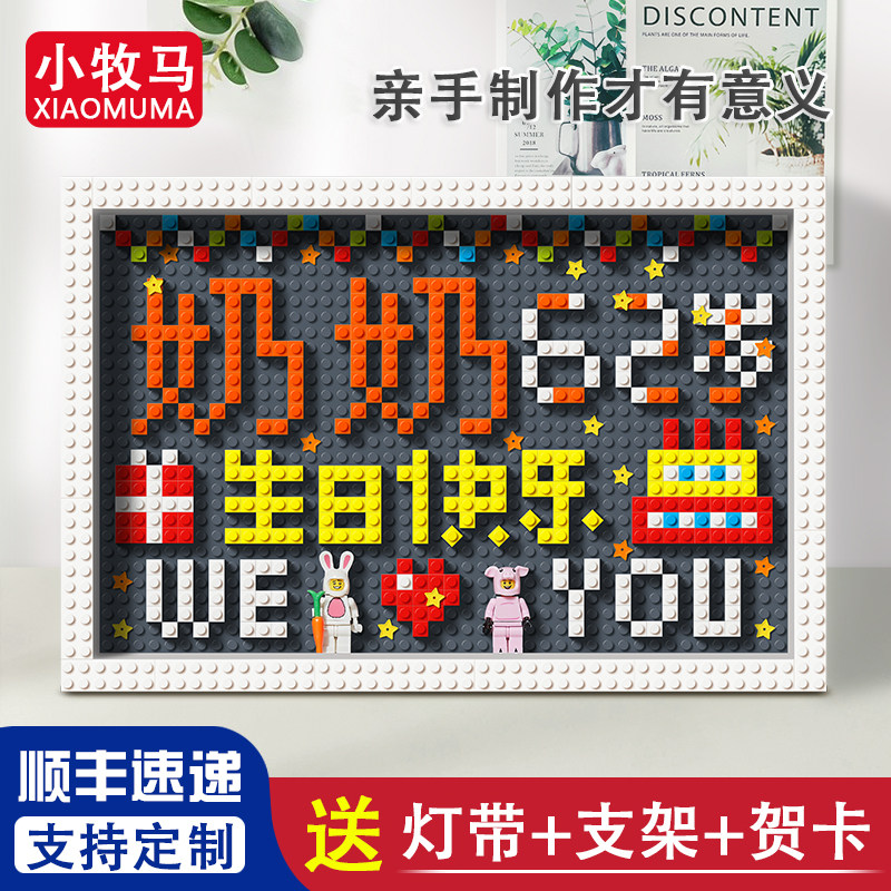 天猫小牧马手工diy立体积木相框摆件送孩子奶奶生日礼物婆婆生辰定制