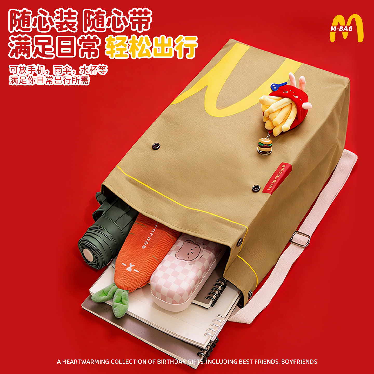 M记背包以其搞怪有趣的设计成为送礼新宠,无论是女生送给闺蜜、男生赠予女友,还是情侣互赠,都能轻松点燃欢乐氛围。包身常印有薯条、汉堡等卡通元素,搭配夸张表情或谐音梗,趣味十足,特别适合喜欢稀奇古怪创意礼物的朋友。母亲节时,它也能化身贴心又俏皮的孝心之选,让妈妈背上后瞬间减龄,收获满满回头率。轻便实用又不失个性,M记背包用幽默感传递温暖,让每一份心意都“包”你开心,是打破常规、表达独特情感的绝佳选择。