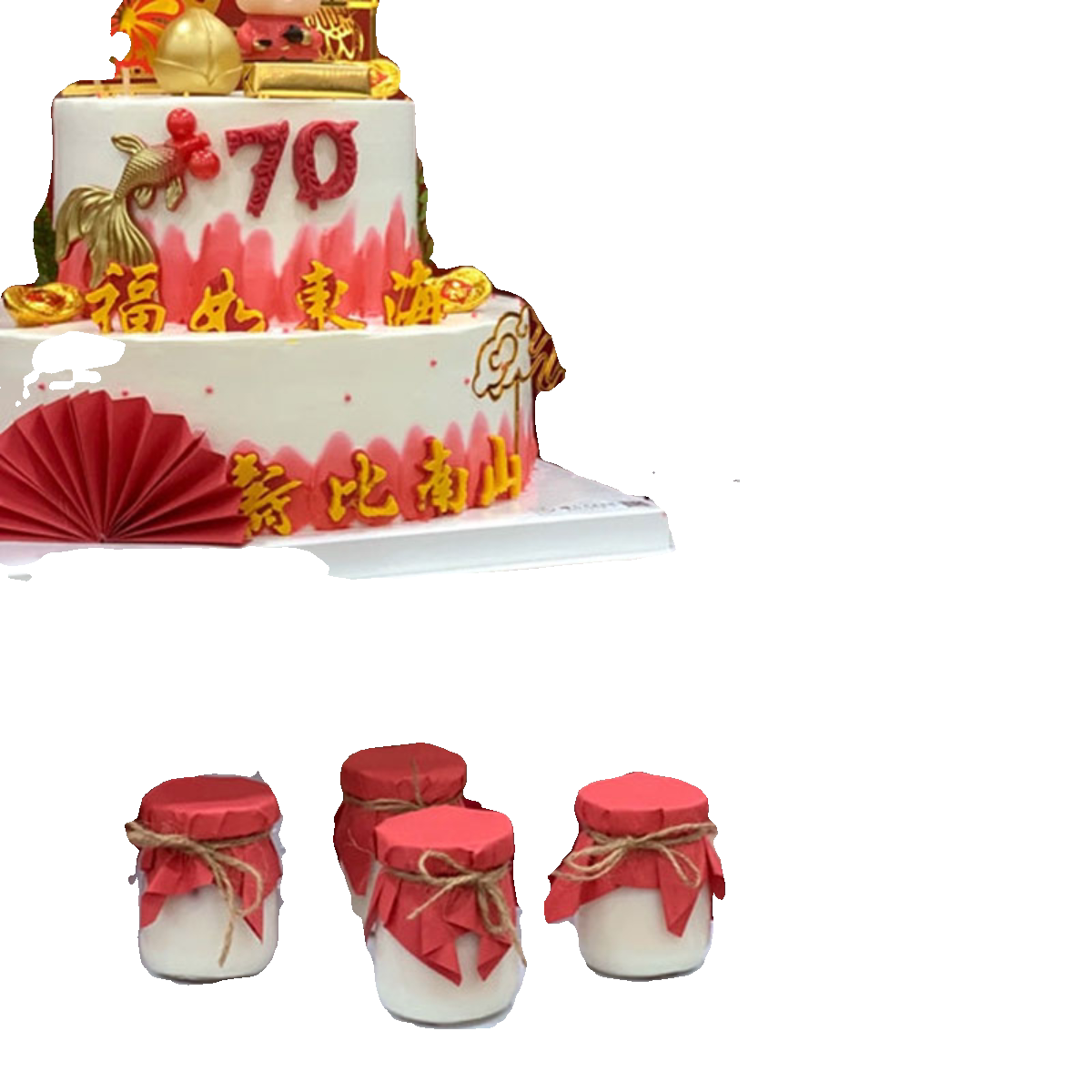 淘新中式祝寿蛋糕装饰摆件书法扇子屏风老爷爷奶奶生日过寿插件装扮