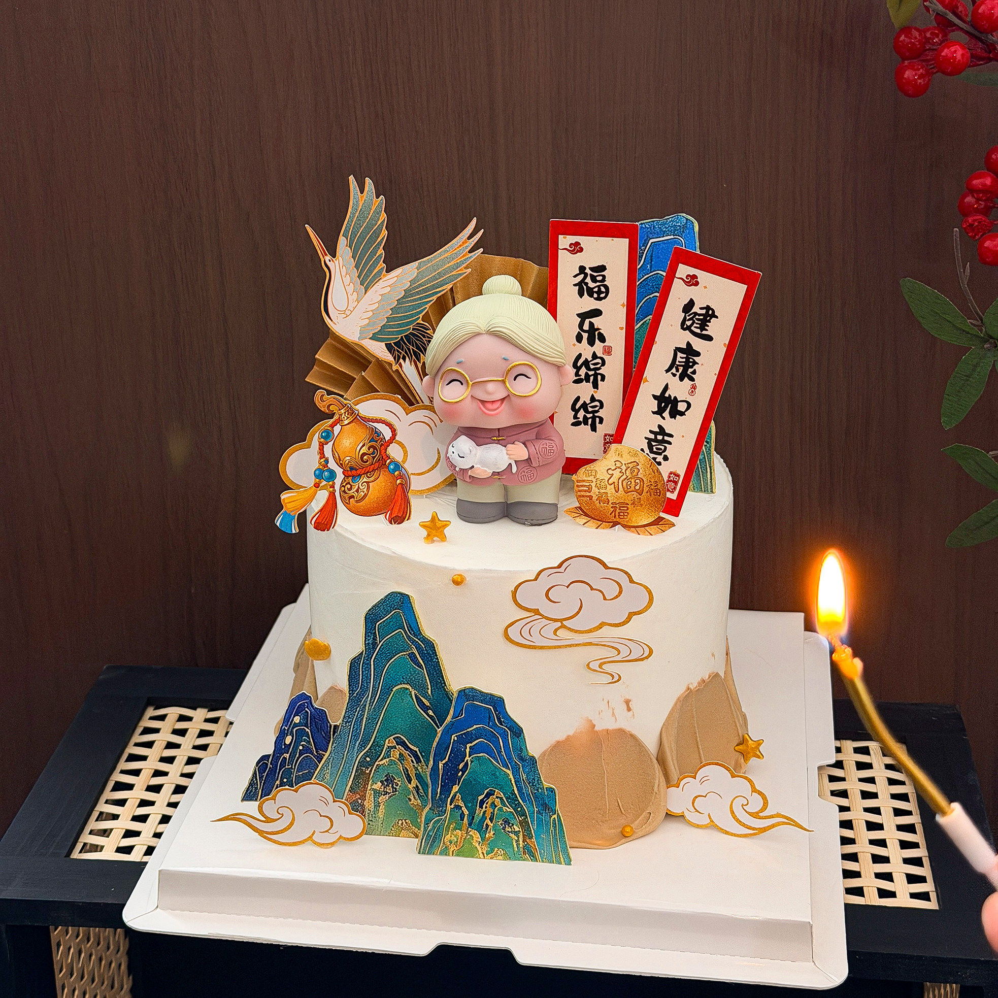 爷爷奶奶长辈祝寿生日快乐蛋糕装饰原创福气满满健康长寿烘焙插件