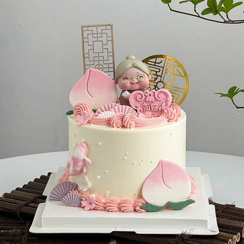 老爷爷老奶奶蛋糕装饰摆件寿星公婆祝寿梅花扇子寿桃生日烘焙插件