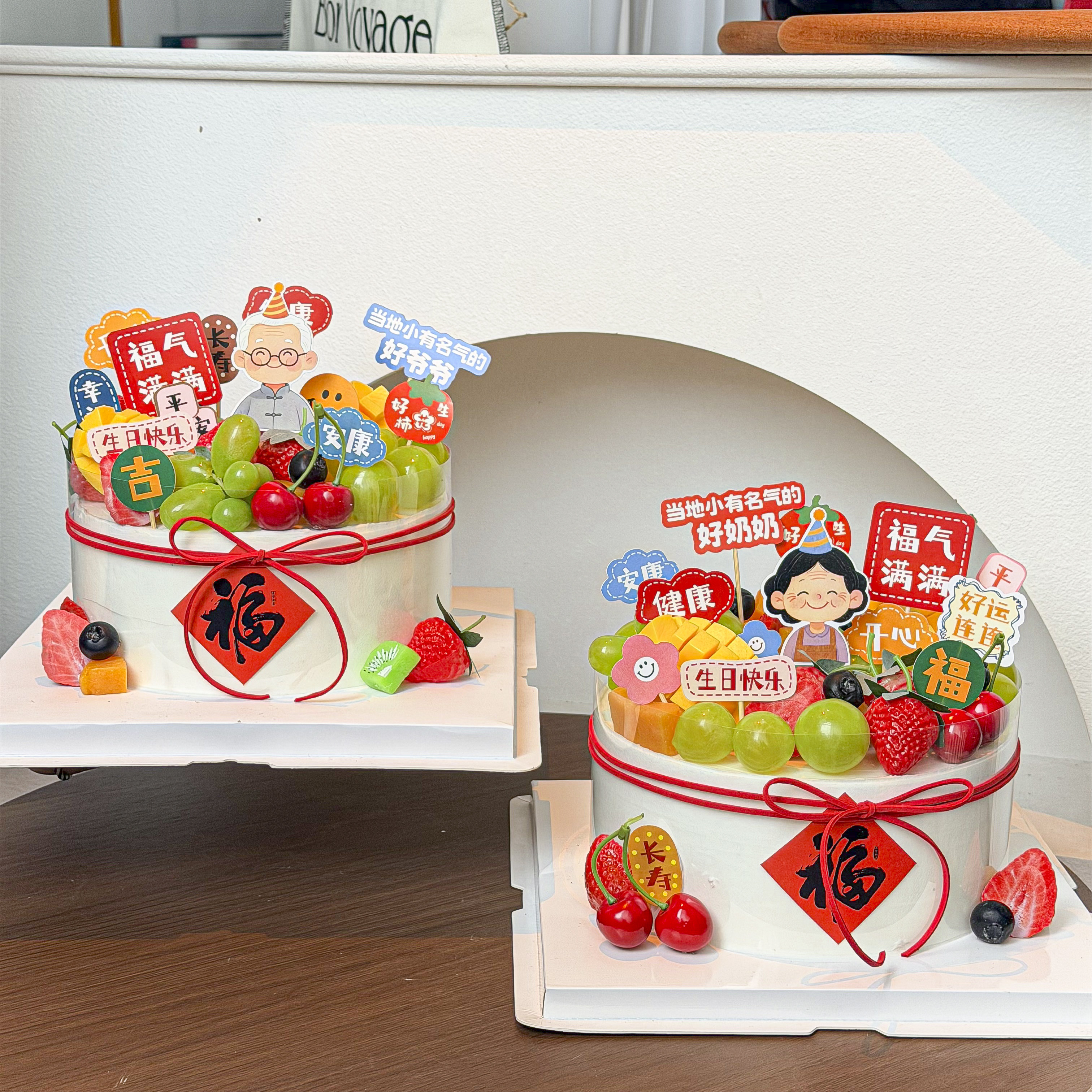 爷爷奶奶祝寿生日蛋糕装饰福如东海寿比南山健康如意流苏对联插件
