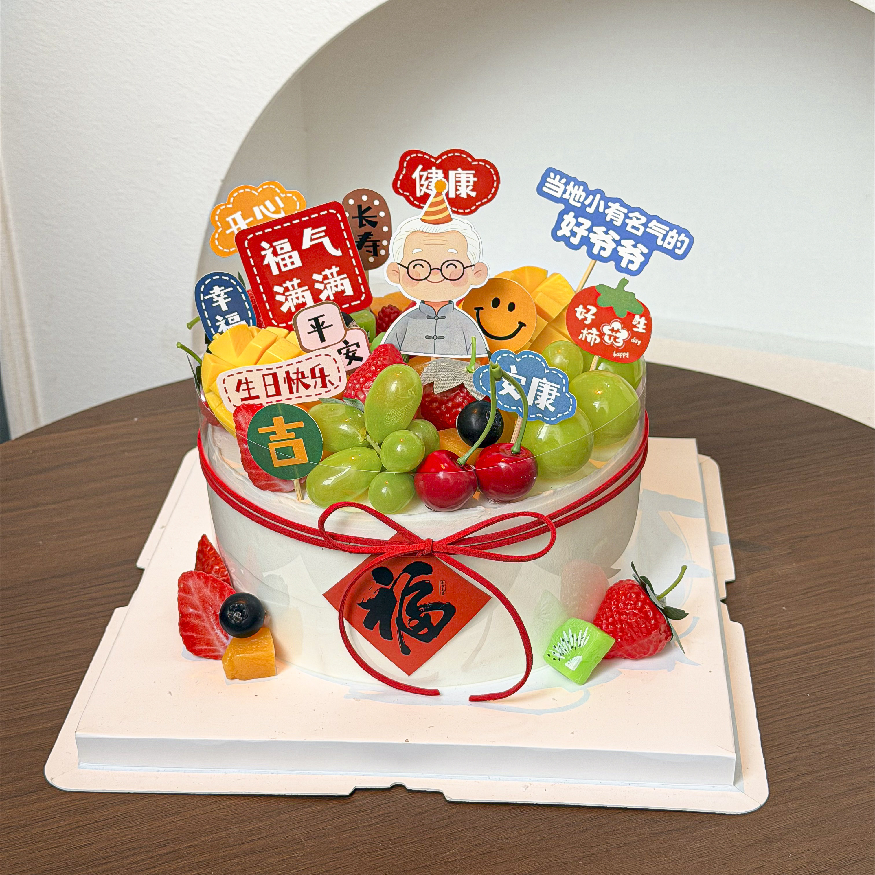 淘宝爷爷奶奶长辈祝寿生日快乐蛋糕装饰原创福气满满健康长寿烘焙插件