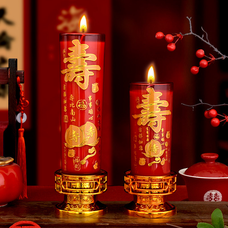 天猫寿辰生日蜡烛老人大寿浮雕寿字喜烛寿星爷爷奶奶添福增寿酥油寿烛