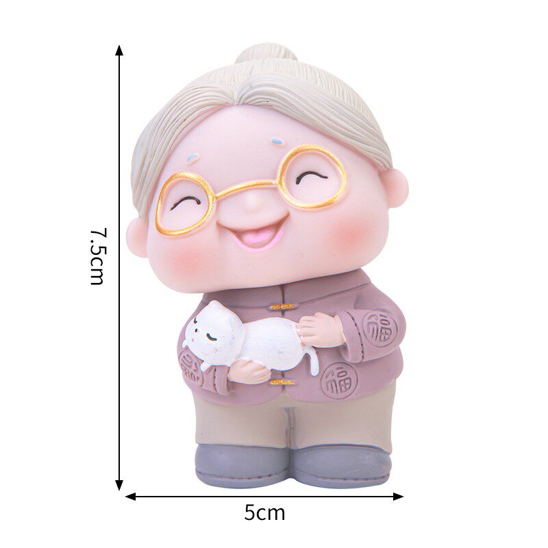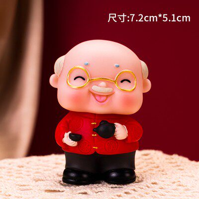 淘宝烘焙蛋糕装饰慈祥茶壶猫咪老爷爷老奶奶摆件老人祝寿生日蛋糕装扮