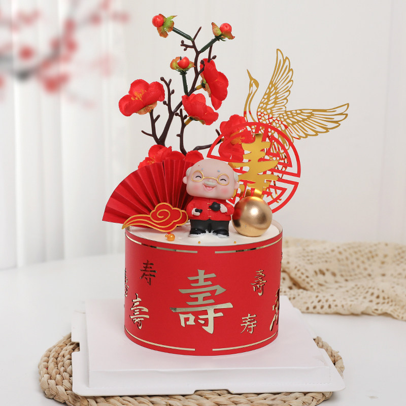 淘网红中式国风生日蛋糕装饰摆件老人祝寿爷爷奶奶寿公寿婆烘焙装扮