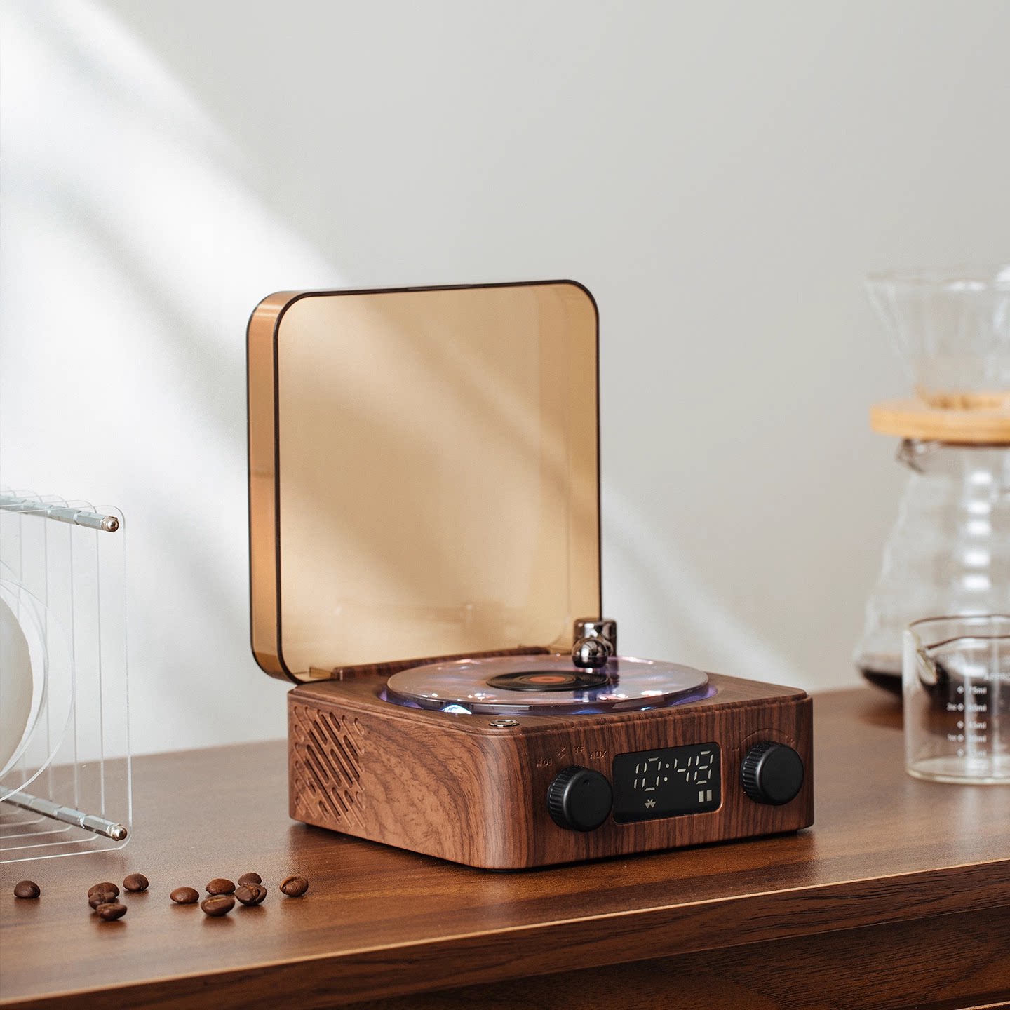 送男生朋友生日礼物KAWOO木纹复古蓝牙音箱礼盒助眠水波纹氛围灯