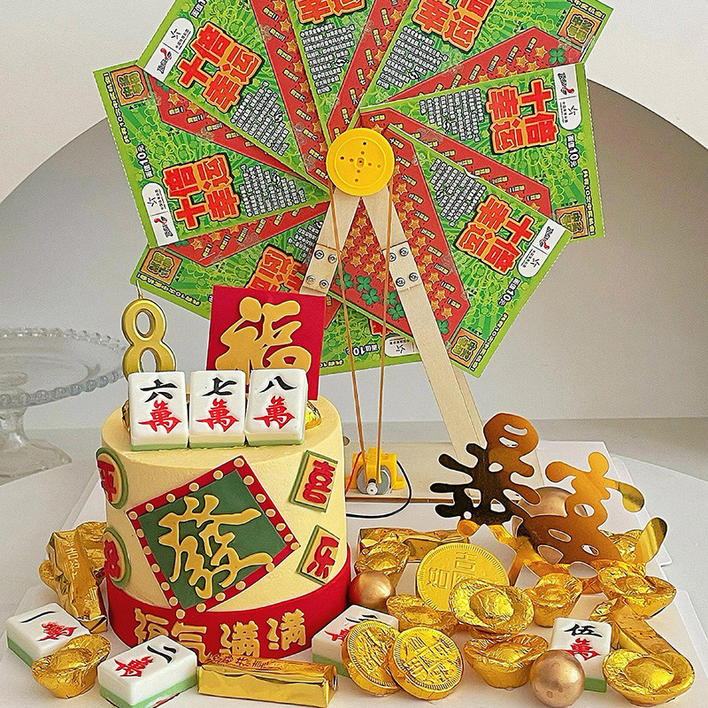 淘宝小红书同款摩天轮彩票风车刮刮乐旋转台烘焙蛋糕爸爸男神生日插件