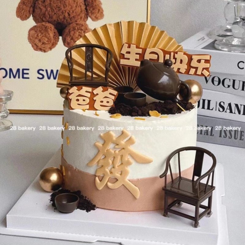 这款网红新中式蛋糕装饰摆件,专为男士生日设计,融合传统东方美学与现代潮流。以精致太师椅、茶壶、茶杯为核心元素,搭配“爸爸”“男神”等温馨祝福插件,既彰显儒雅气质,又传递满满敬意与爱意。采用环保树脂材质,细节考究,色泽温润,适用于生日蛋糕、甜品台或家居装饰。无论是送给父亲、丈夫还是挚友,都能体现独特心意,让生日仪式感拉满。新中式风格打破传统刻板印象,简约中见韵味,是当下热门的创意礼品之选,兼具观赏性与纪念意义。