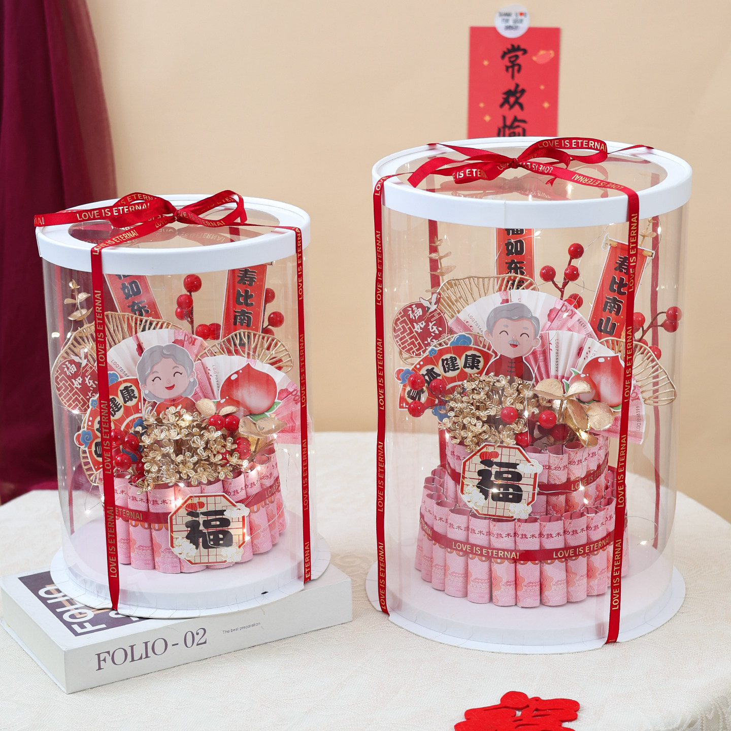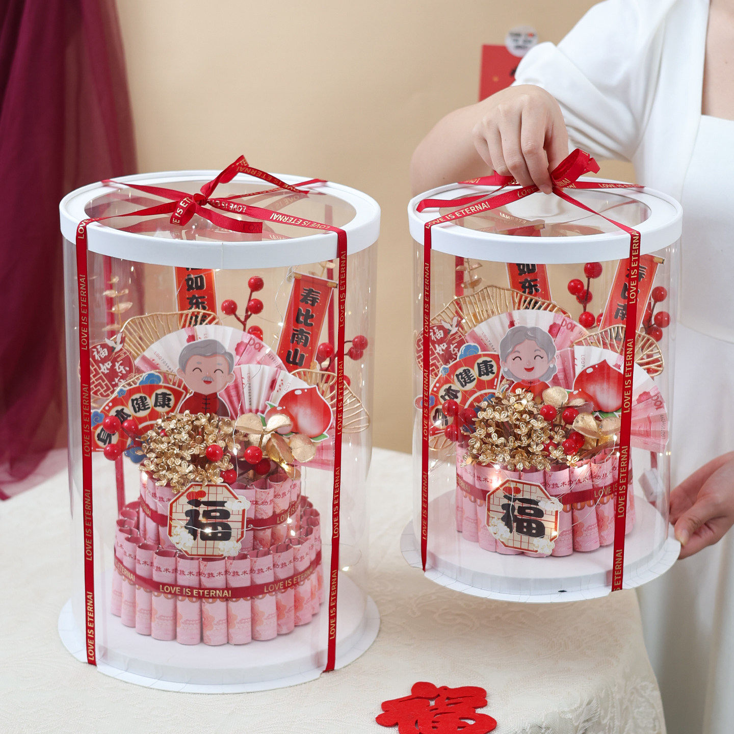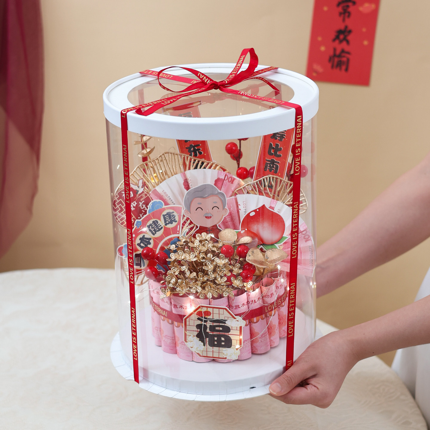 淘宝祝寿蛋糕有钱花礼盒diy福如东海贺寿生日礼物送长辈爷爷奶奶寿宴