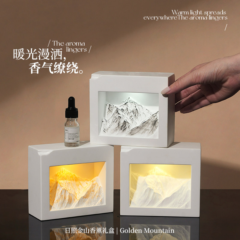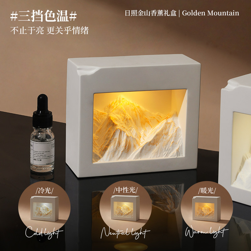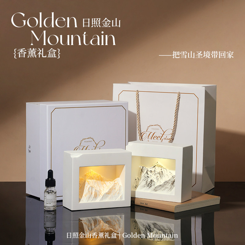 天猫日照金山香薰礼盒扩香石摆件生日礼物送朋友女生氛围感实用小夜灯