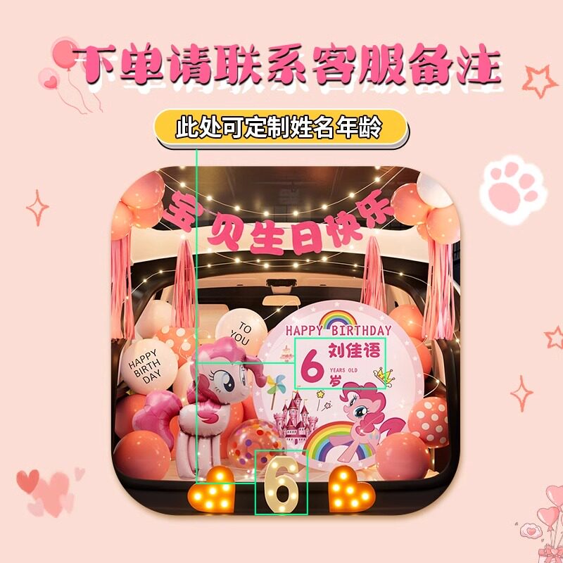 天猫小马宝莉后备箱惊喜布置生日女儿快乐仪式感小女孩儿童汽车尾装饰