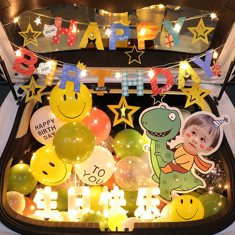淘宝儿童汽车后备箱生日惊喜装饰女儿 女孩男孩 女童周岁场景布置气球