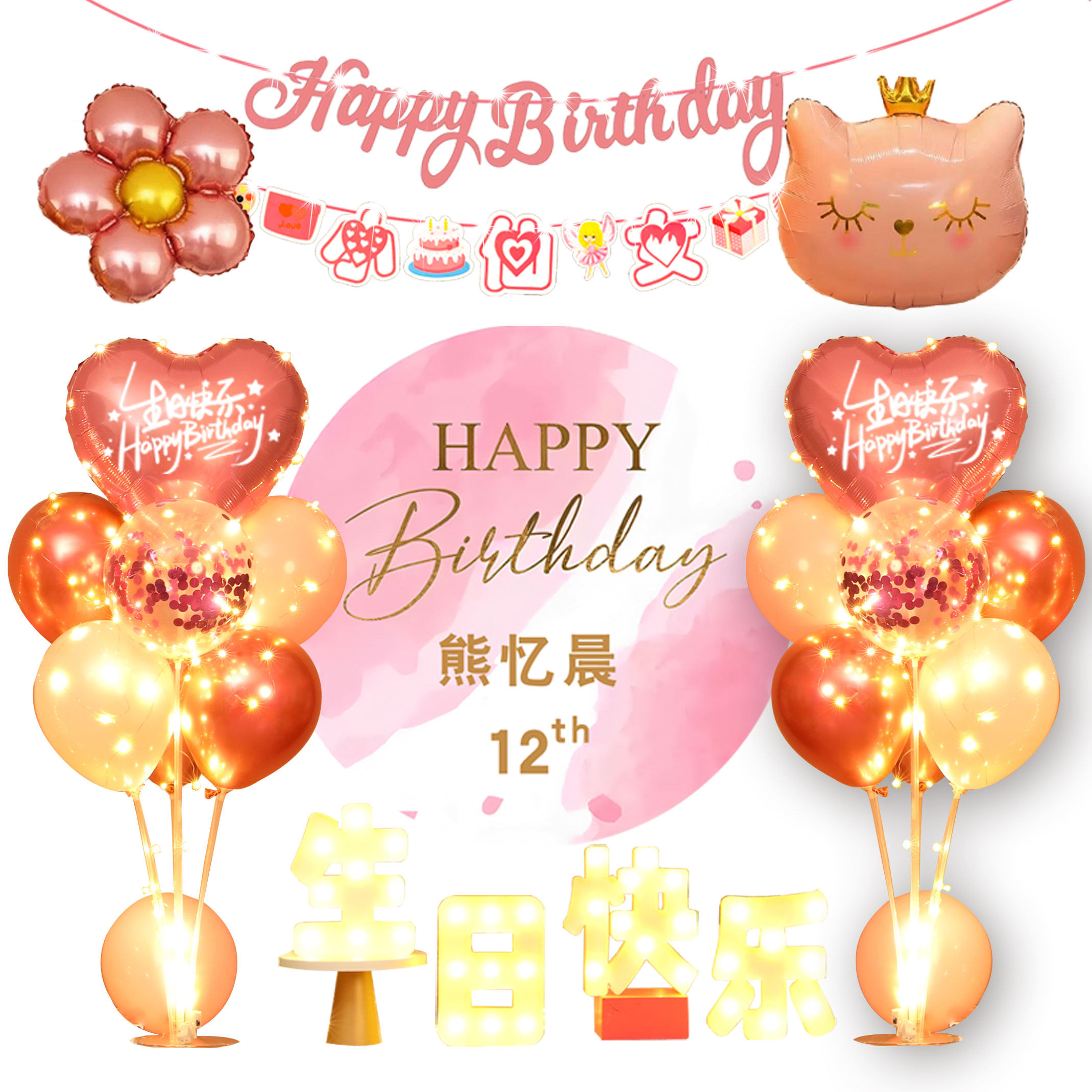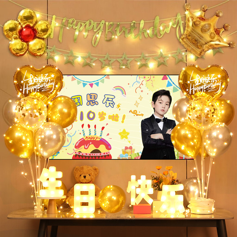 10岁生日气球装饰成人男女儿童宝宝18岁生日快乐海报电视投屏布置