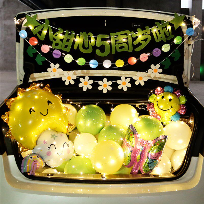 淘宝网红汽车后备箱惊喜装饰 生日男孩女儿汽车车尾箱气球布置轿车