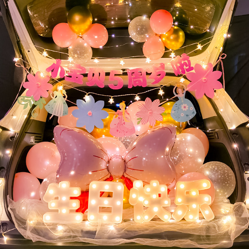 淘宝汽车后备箱惊喜生日快乐女儿车尾箱气球装饰儿童周岁汽球场景布置