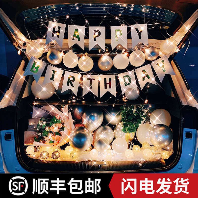 天后备箱生日女孩惊喜布置女儿仪式感儿童汽车场景小马宝莉气球装饰