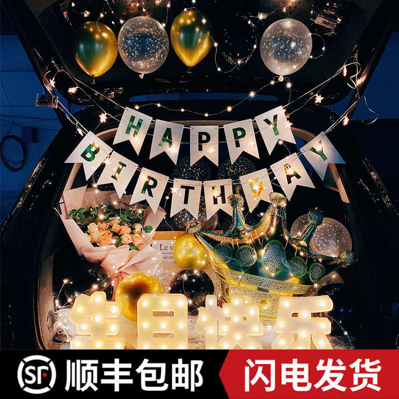 后备箱生日女孩惊喜布置女儿仪式感儿童汽车场景小马宝莉气球装饰