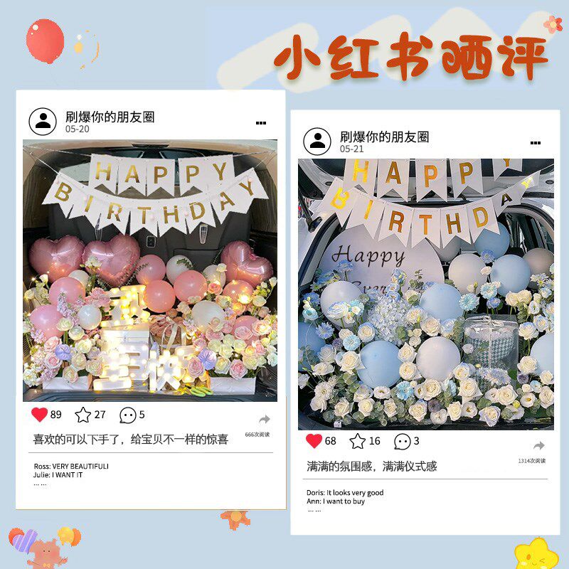 淘宝汽车后备箱惊喜布置七夕氛围生日装饰男孩女儿浪漫创意求婚车尾箱