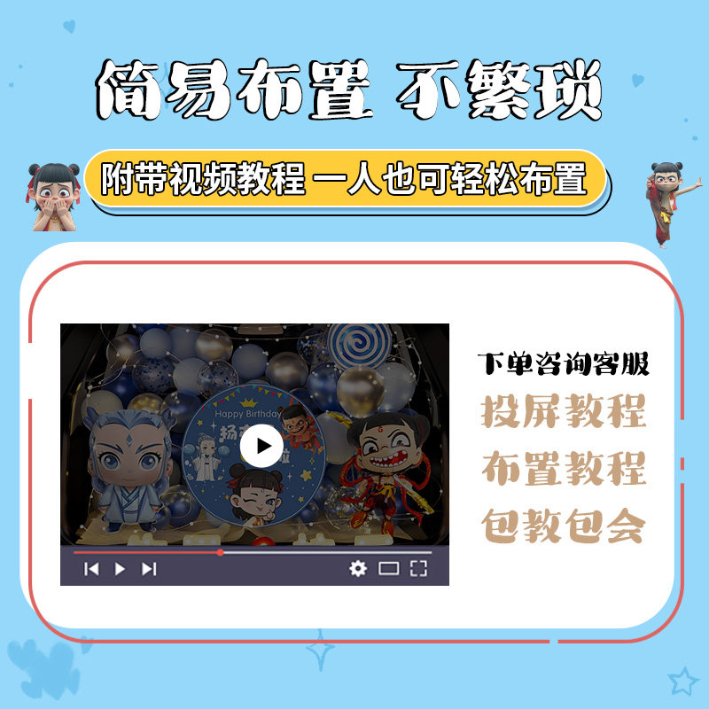 天猫哪咤后备箱生日惊喜布置敖丙男孩装饰主题女儿6岁仪式感汽车尾箱