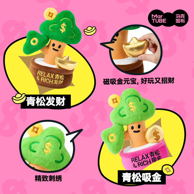 马克图布超级植物青松发财毛绒摆件公仔,是一款融合萌趣设计与美好寓意的创意礼物。以象征坚韧与长寿的青松为灵感,搭配“发财”谐音元素,寓意财源广进、好运常伴。公仔采用柔软亲肤的毛绒材质,手感细腻,造型憨态可掬,既可作为桌面摆件装饰空间,也能陪伴左右增添温馨。无论是生日、元旦、新年,还是送给闺蜜、亲友,都是表达祝福与心意的贴心之选。小巧便携,适合居家、办公或车载摆放,让好运时刻相伴。马克图布用心打造每一件礼物,传递温暖与祝福,是节日馈赠的理想选择。