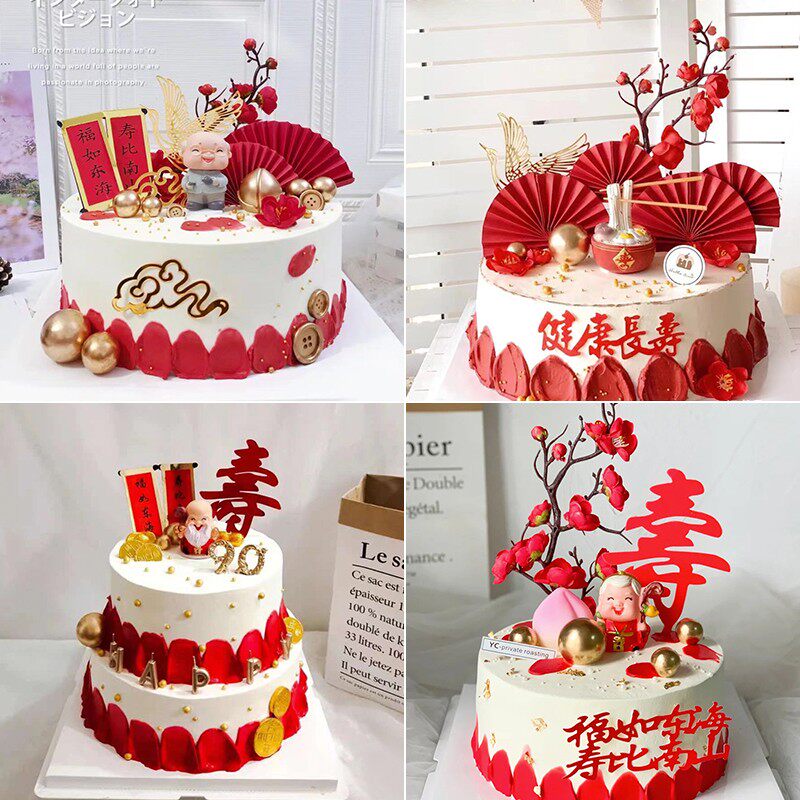 淘网红中式国风生日蛋糕装饰摆件老人祝寿爷爷奶奶寿公寿婆烘焙装扮
