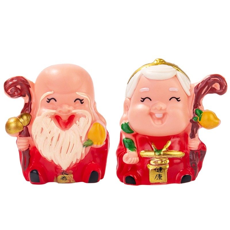 淘宝寿星公寿星婆蛋糕装饰摆件老爷爷老奶奶生日祝寿对联红色折扇插件
