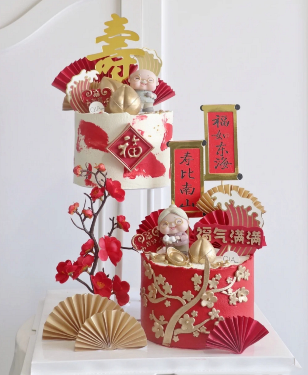 淘网红中式国风生日蛋糕装饰摆件老人祝寿爷爷奶奶寿公寿婆烘焙装扮