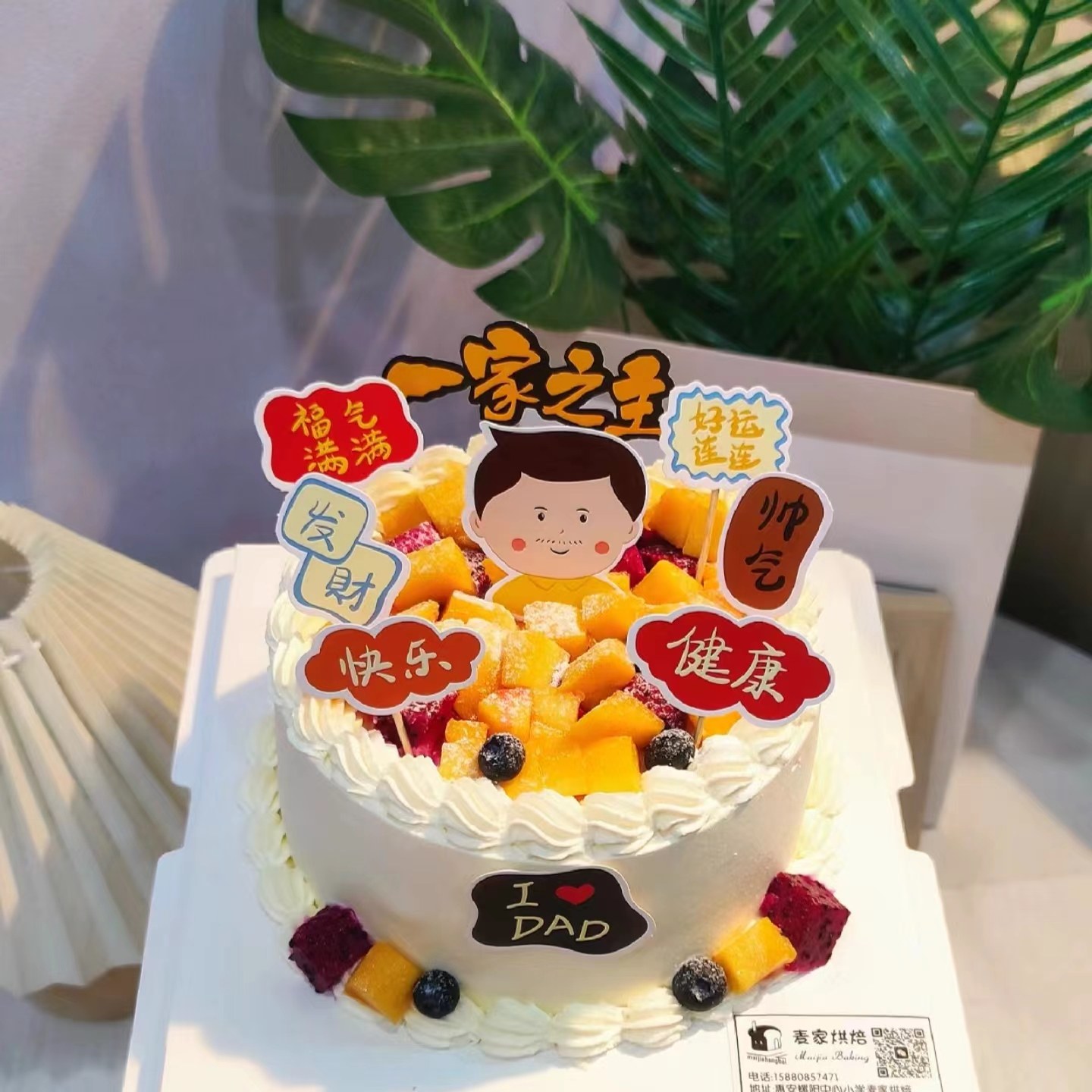 淘男神男士蛋糕装饰港风八方来财插件爸爸生日仿翻糖發字烘焙插牌