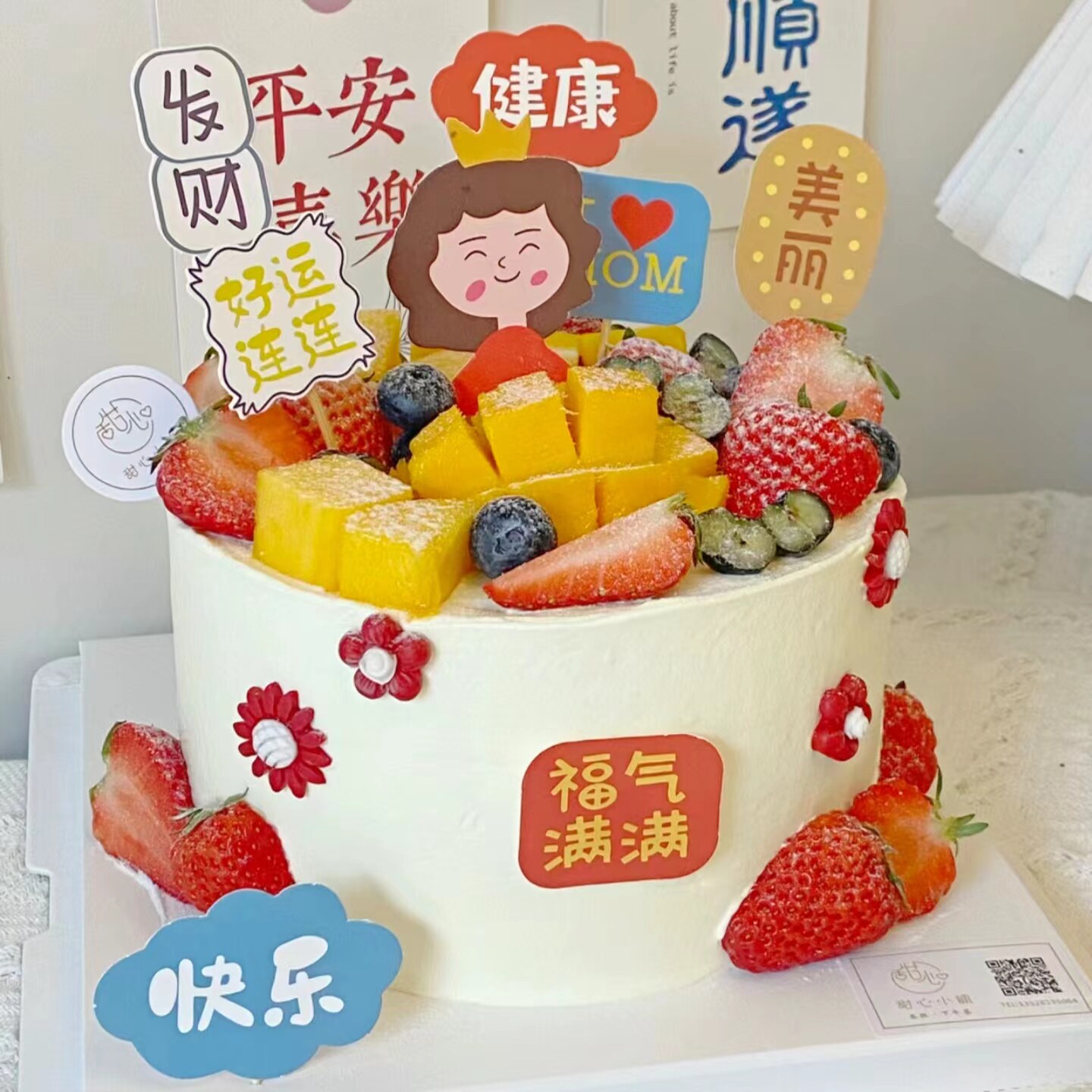 淘宝网红母亲节父亲节蛋糕装饰福气满满健康快乐妈妈爸爸生日祝福语