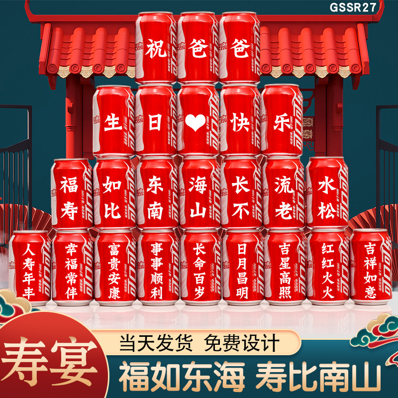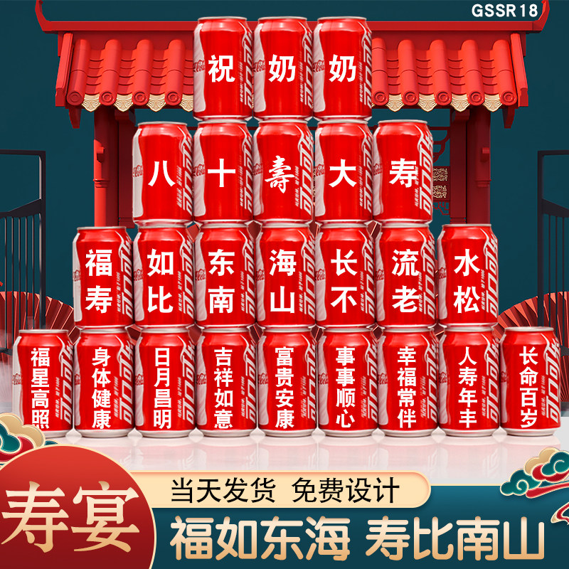 天猫可乐定制易拉罐长辈老人60爷爷奶奶妈妈爸爸生日贺寿过寿大寿布置