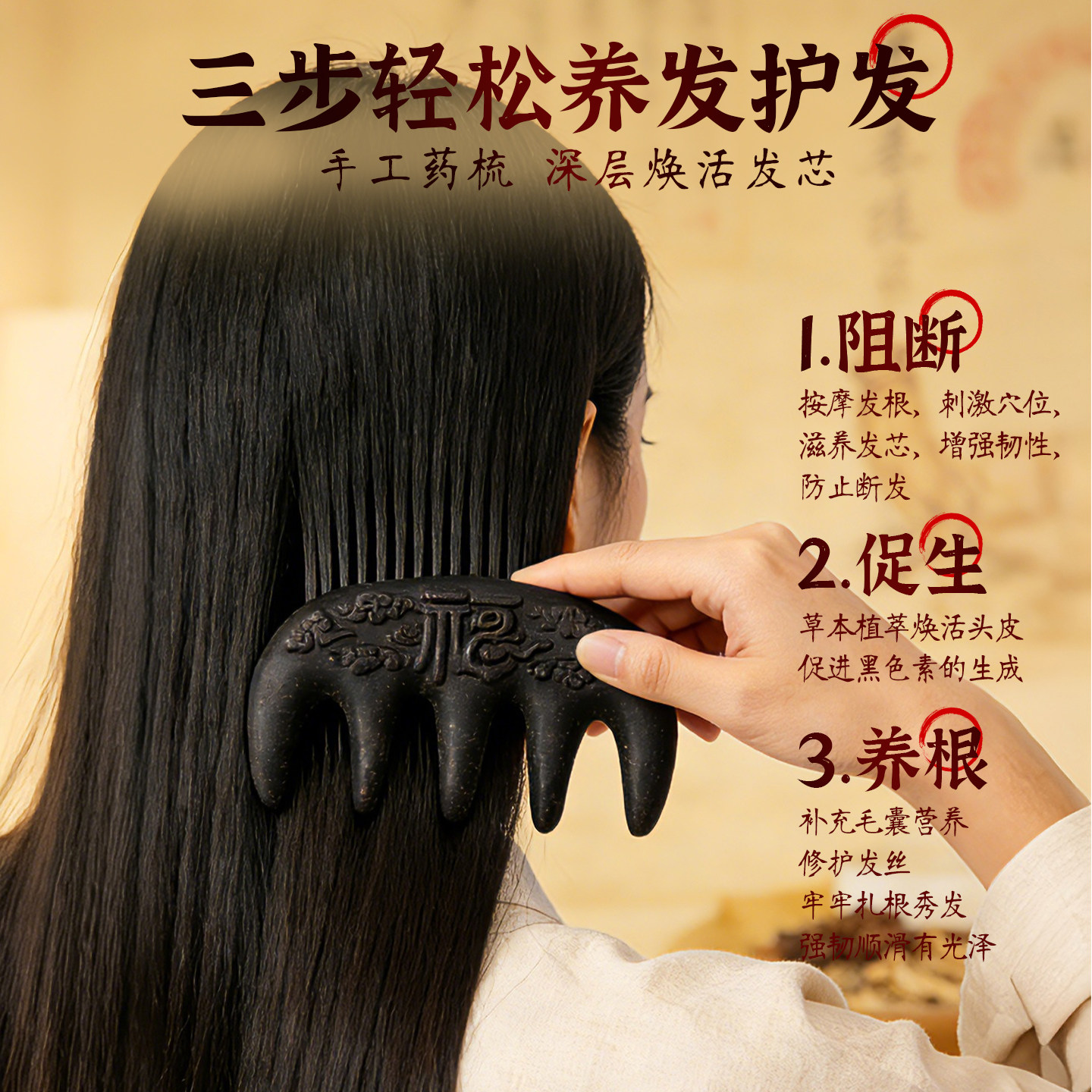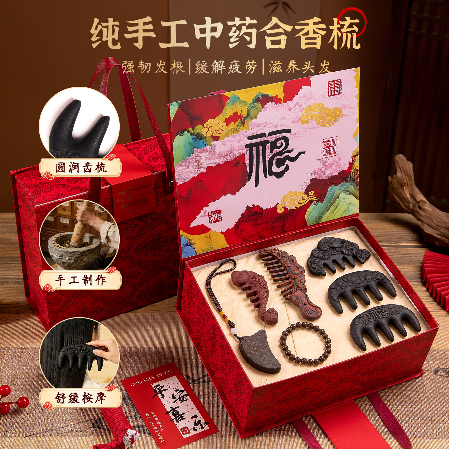 天猫母亲节送妈妈长辈草本养生中药梳头皮护理按摩梳实用生日伴手礼女