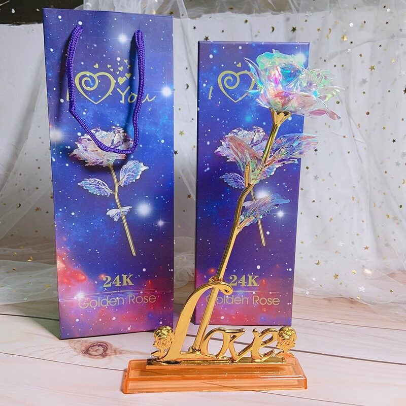 淘宝生日礼物女生母亲节送妈妈老师七彩炫光玫瑰花星空彩金玫瑰花摆件