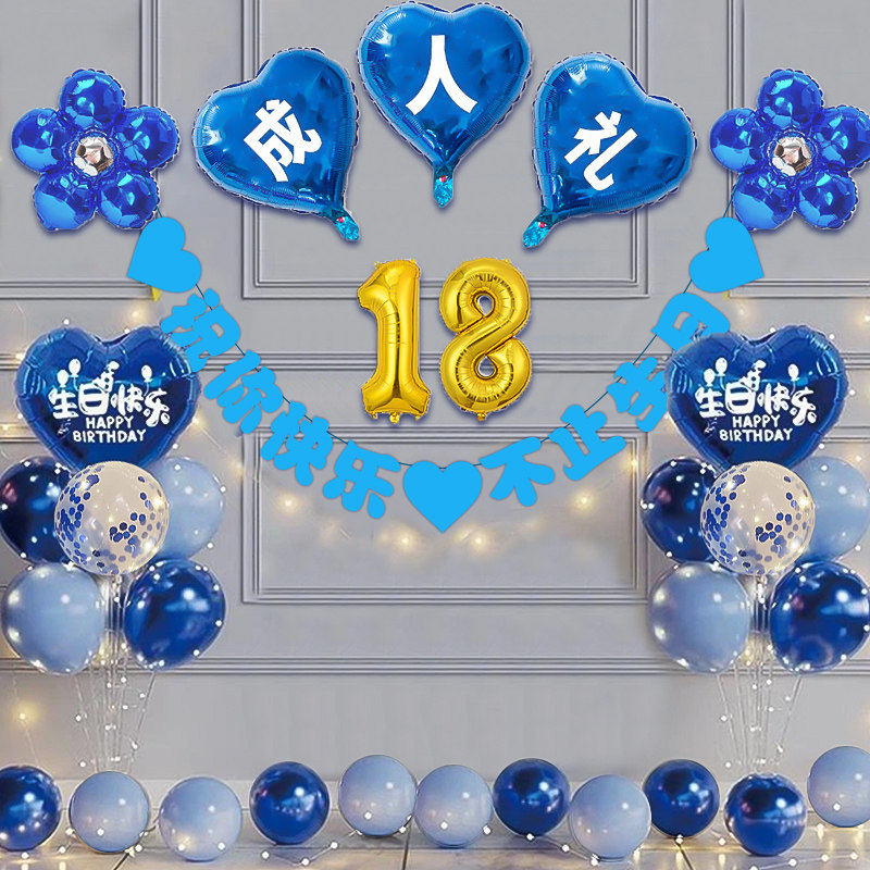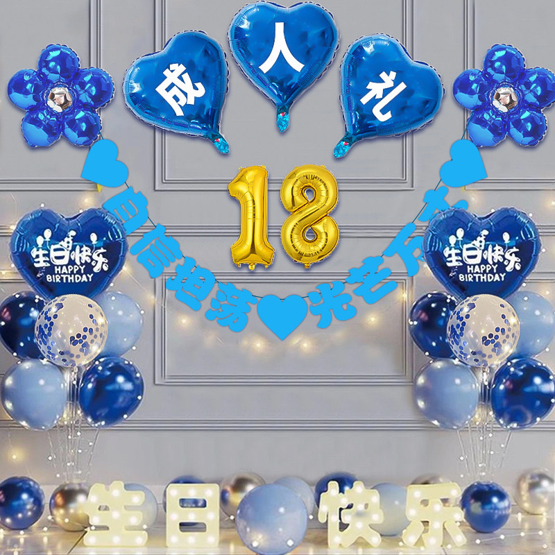 淘宝男生儿子18岁生日场景背景墙布置装饰成人礼物仪式高级氛围感气球
