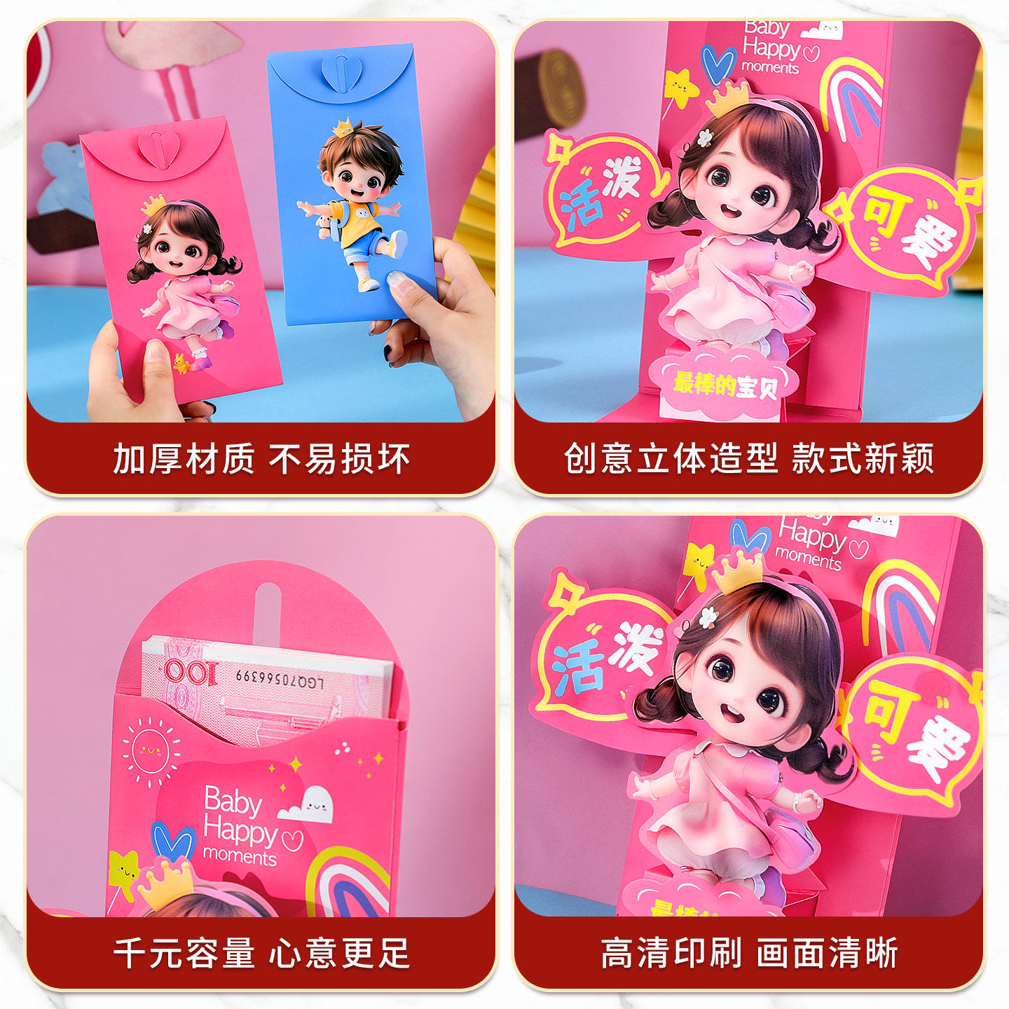 天猫2026新款生日快乐红包立体卡通可爱宝宝满月周岁儿子女儿利是封包
