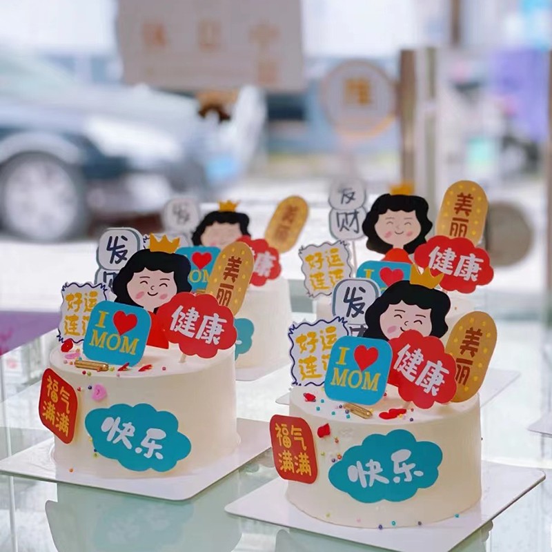 淘宝母亲父亲节蛋糕装饰福气满满健康快乐妈妈爸爸生日祝福语烘焙插牌