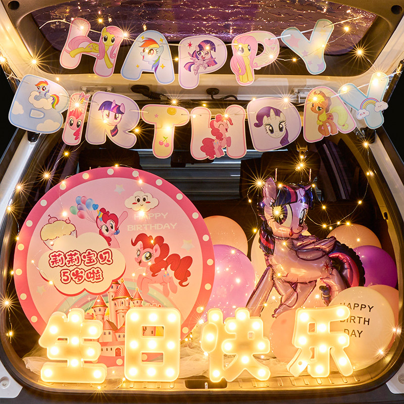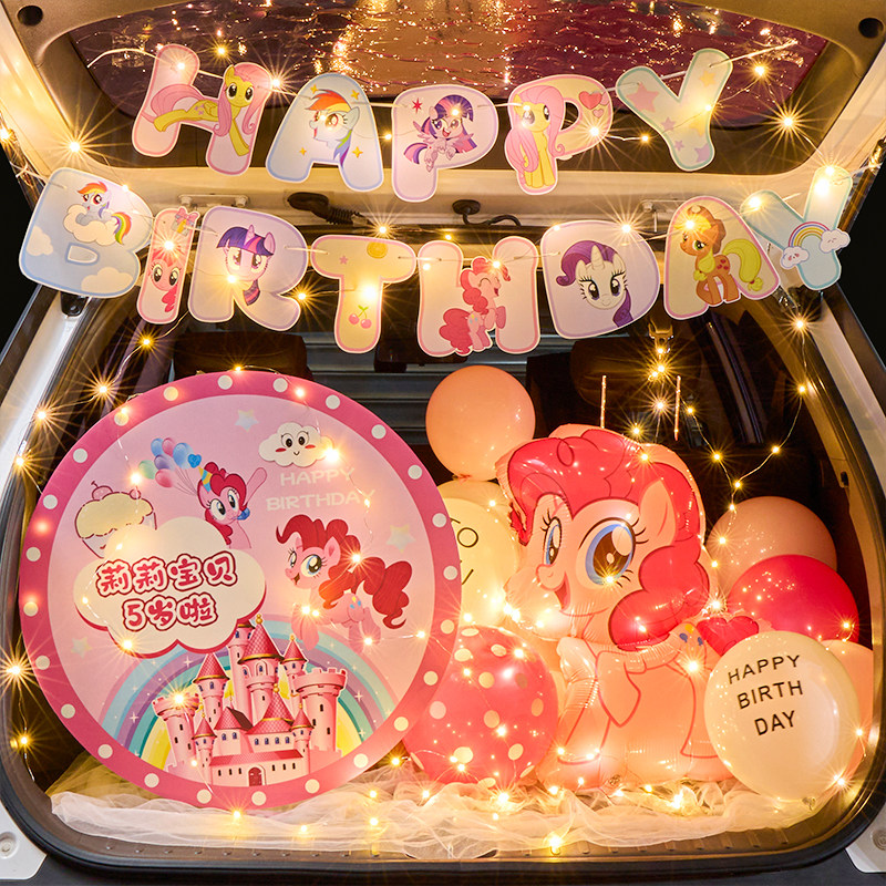 天猫小马宝莉后备箱惊喜布置生日女儿仪式感小女孩儿童汽车尾气球装饰