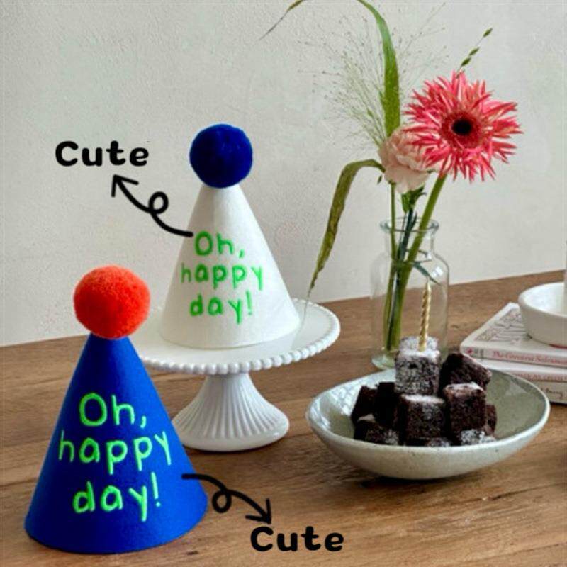 ins韩系多巴胺生日帽派对布置氛围男女儿童派对毛毡帽子拍照道具