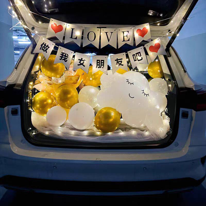 汽车后备箱惊喜布置生日女儿男女孩装饰七夕求婚礼物浪漫表白场景
