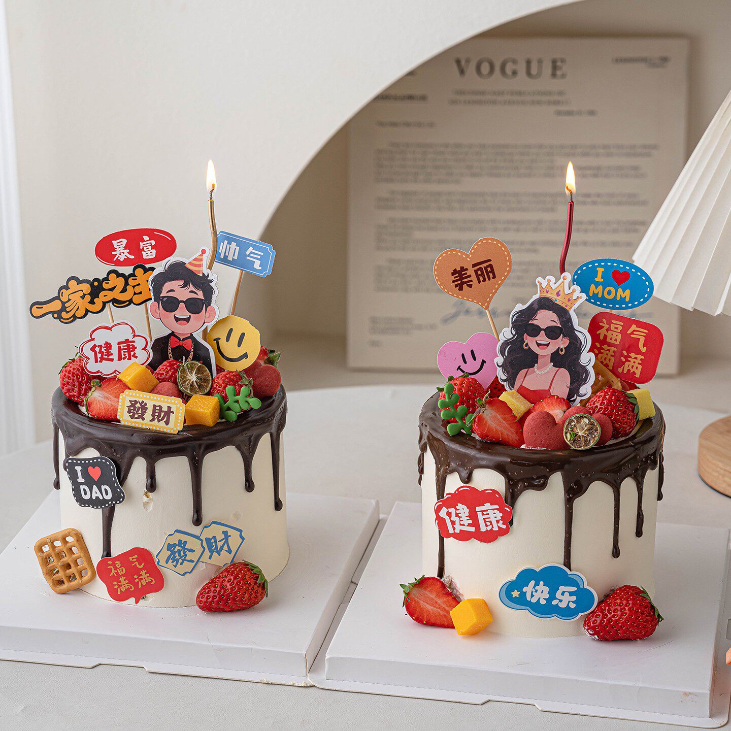 男神男士蛋糕装饰港风八方来财插件爸爸生日仿翻糖發字烘焙插牌