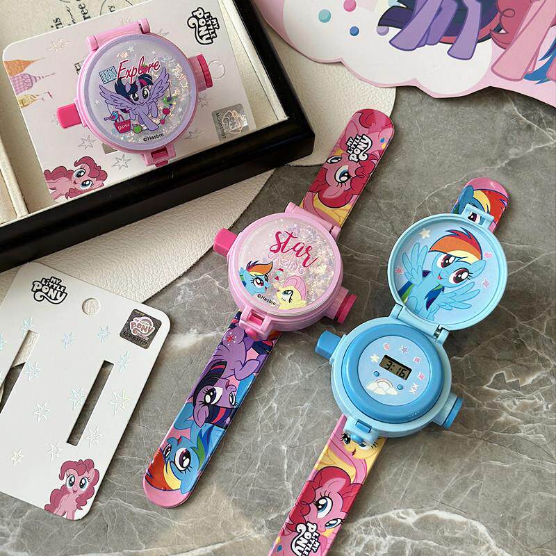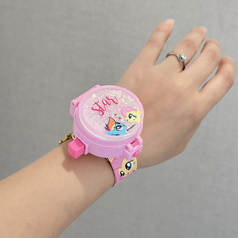 淘宝六一礼物小马宝莉投影啪啪圈手环手镯翻盖电子手表女儿童生日礼品