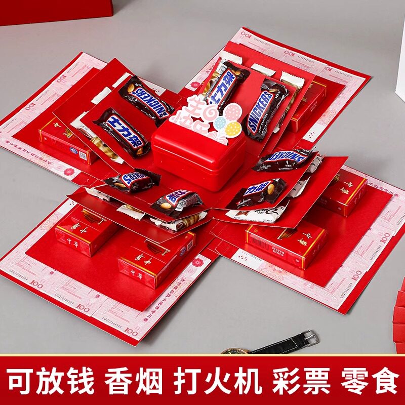 生日礼盒惊喜爆炸盒子装钱的爸爸礼物老人妈妈父亲实用60岁大寿送